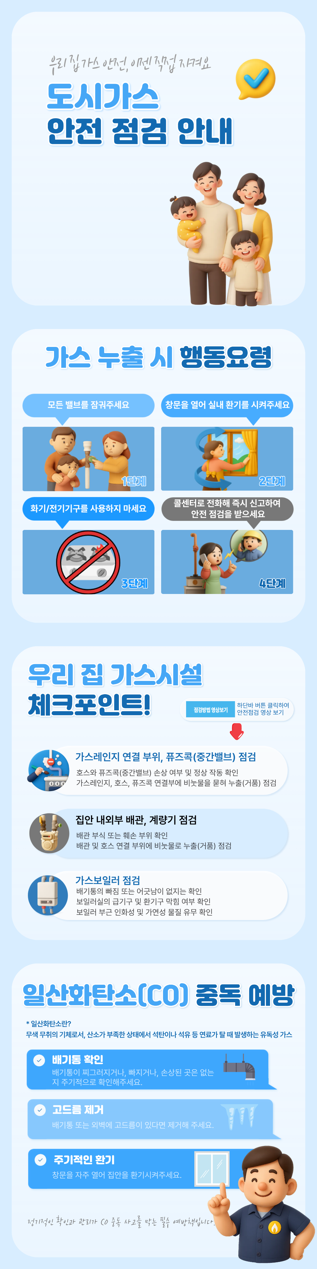 우리모두 가스안전점검을 실시하여 우리집 가스안전은 스스로 확인하는 습관을 가집시다.