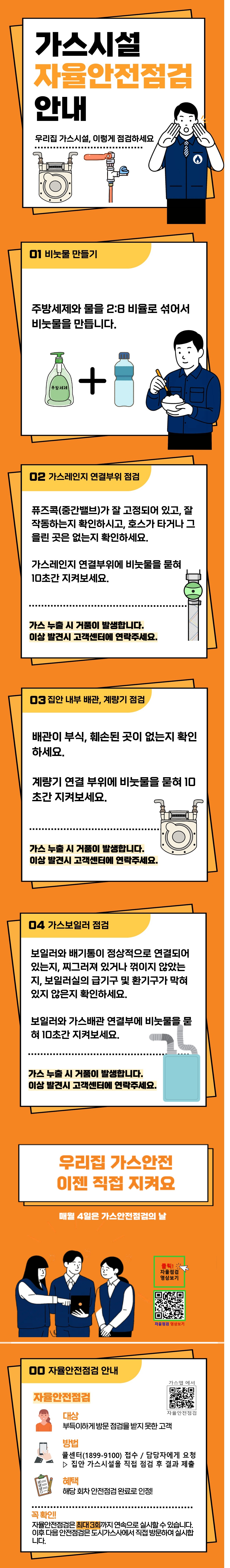 가스안전점검! 매월4일은 안전점검 날입니다. 잊지 마세요!